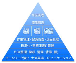 「管理のピラミッド」という言葉をご存知ですか?全ての管理事項の底辺を支えるのが「社内のコミュニケーション」にあると言われています。チームワークを強化し、社員の士気を高めるには、この社内コミュニケーションの土台が脆くてはあらゆる管理施策が機能しません。