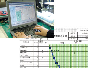 当工場では自動車用のATやクラッチ板など、駆動系部品を製造しています。作業効率を高めるため積極的に改善対策に取り組んでいます。10年程前から、作業の現状を分析・検討する指標資料として、「作業標準表」「レイアウト図」「作業分析図」を活用。この資料から問題点を見つけ、ムリ・ムラ・ムダを省くために作業の工程を入れ替えたり、作業者への助言を行ったりして、役立てています。改善のため必要な基礎資料は、従来からパソコンで作成していました。しかし、作成作業に時間をとられ、とくに作業手順を入れ替えて検討するときなどは手作業で表を切り貼りするなど手間がかかることが課題でした。また、資料も数字などが多く、わかりにくい点も改善点でした。